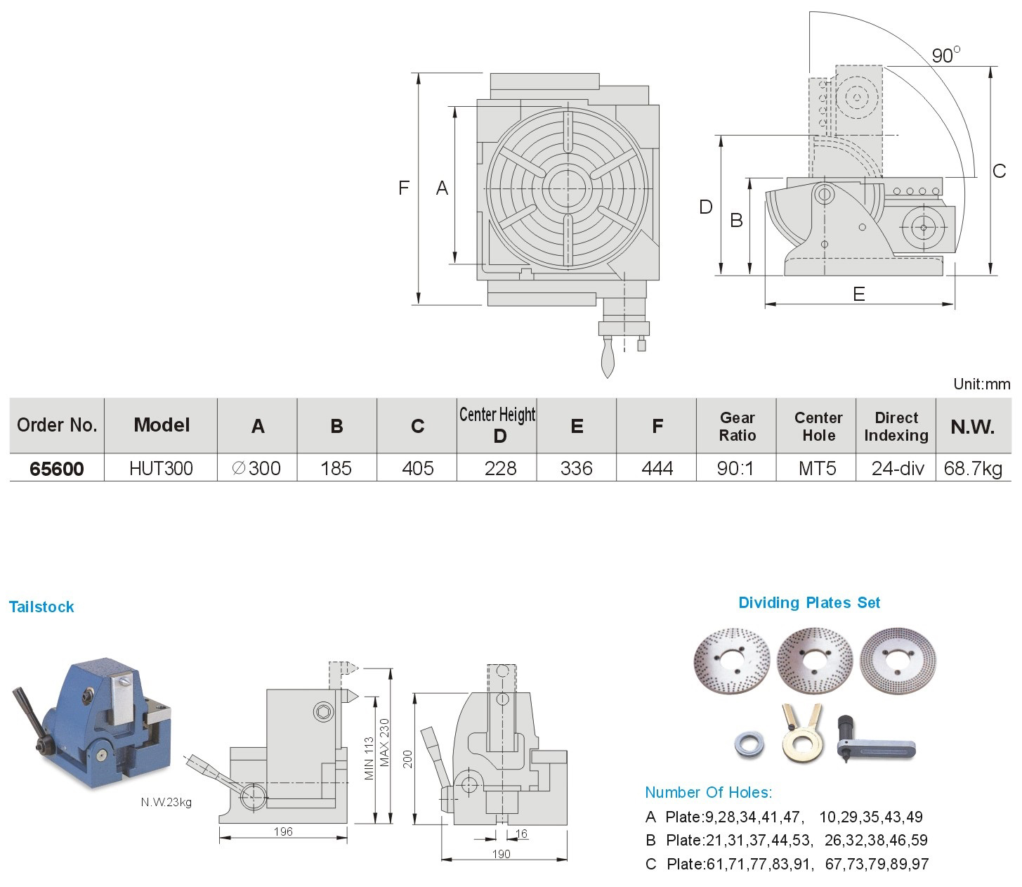 ► Tailstock & Dividing plate set are optional.