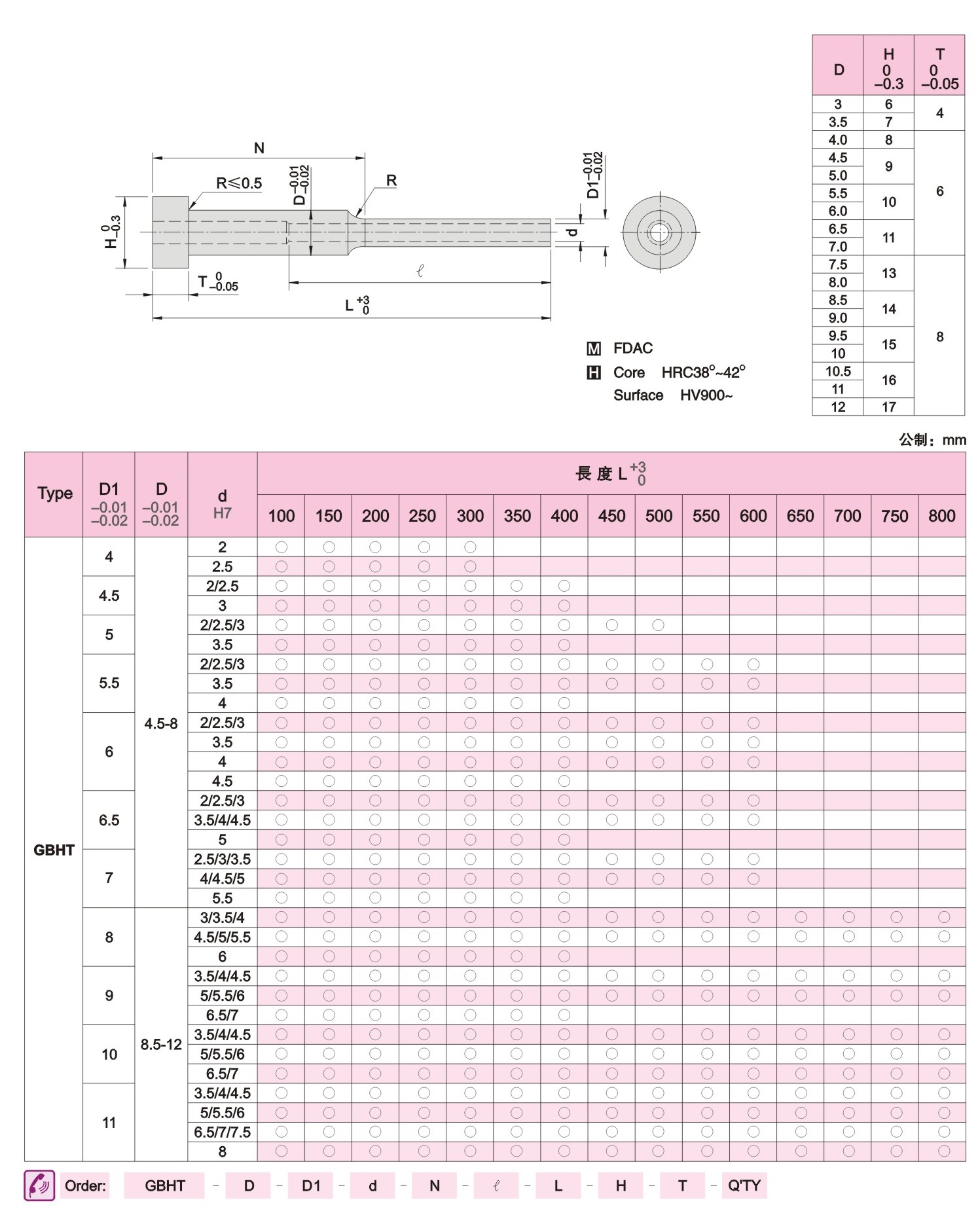 Thru Hard Hot Work Straight Ejector Pins GBDS Type