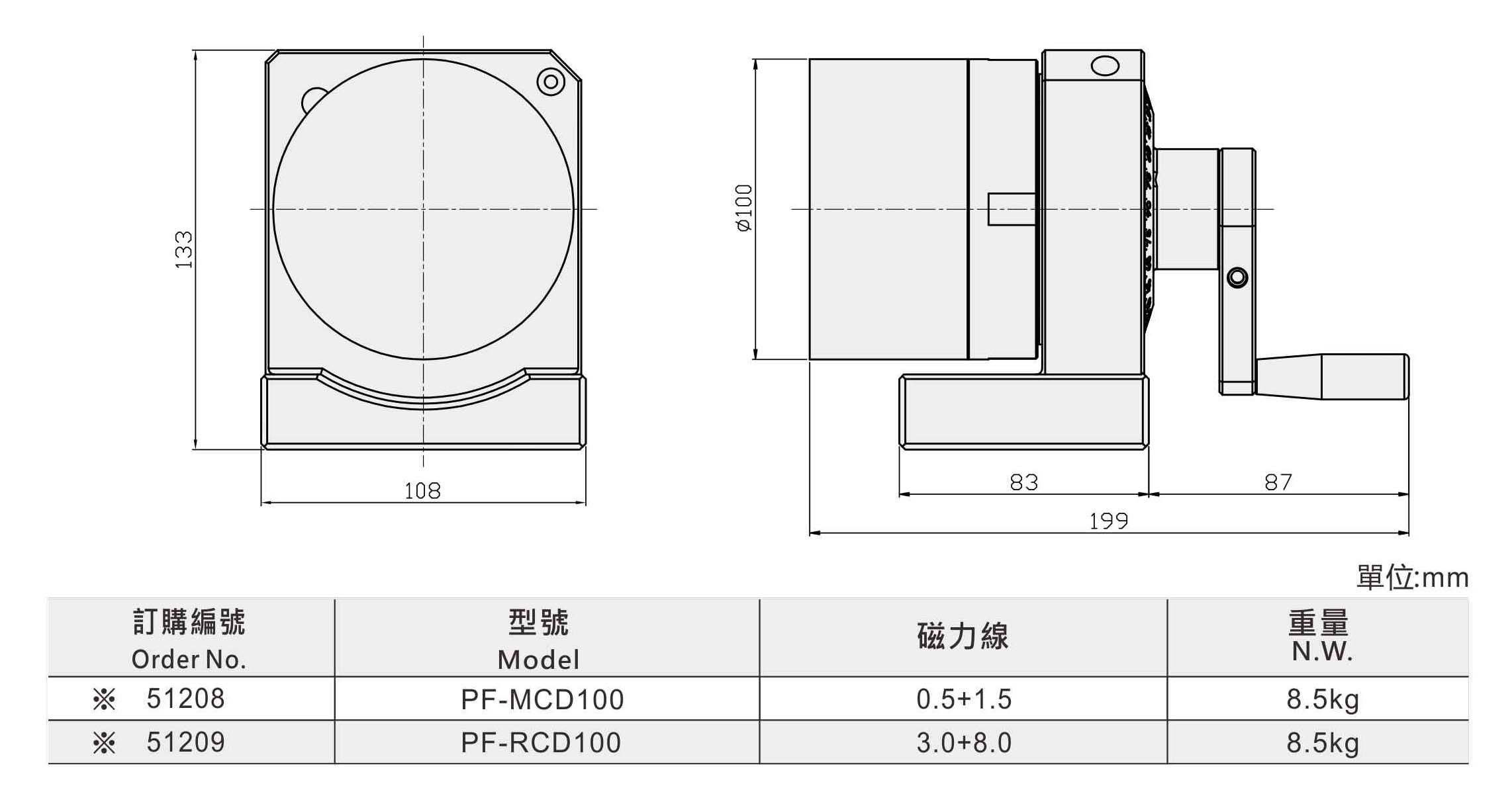► 適用於平面磨床加工,適合吸持較小的工件。安装、拆卸方便。ON/OFF以扳手操作。